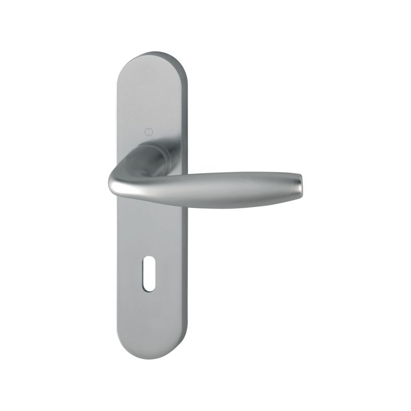 Pour porte intérieure d?épaisseur de 38 à 47 mm. Carré à montage rapide garantissant un montage simple, sans jeu, sans outil et durable. Plaque : 190 x 41 mm (pour entraxe 165 mm) et 234 x 39 mm (pour entraxe 195 mm) Entraxe de serrure : 70 mm Fouillot carré : 7 mm Longueur béquille : 127 mm Saillie de la béquille : 56 mm Finition : aluminium aspect inox Conditionnement : boîte