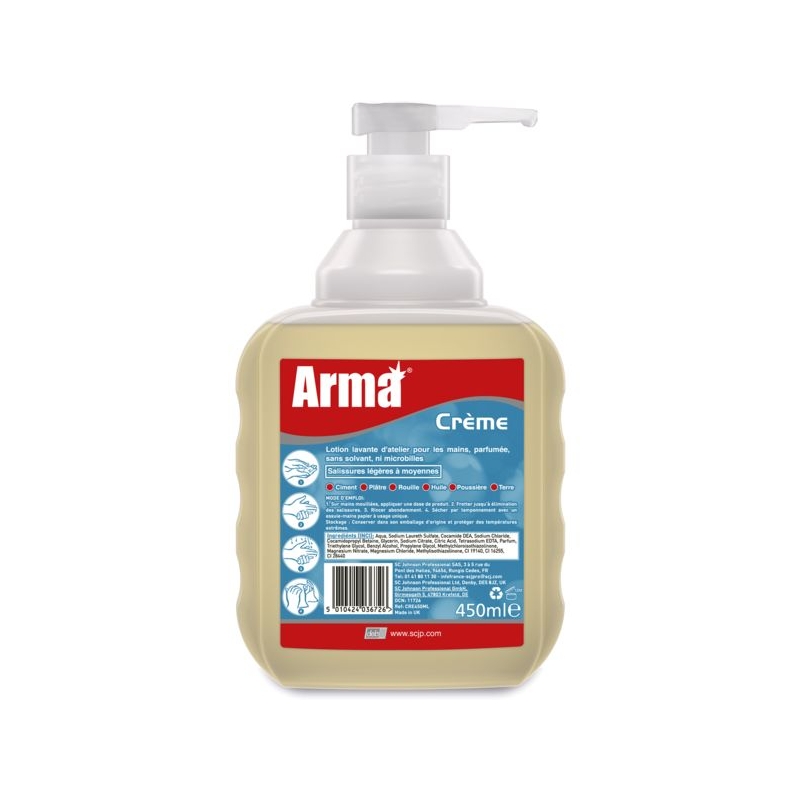 Pour salissures légères. Lotion lavante d'atelier pour les mains, sans solvant ni charges, agréablement parfumée. Formule glycérinée adaptée aux lavages fréquents. Lotion onctueuse s'appliquant et s'éliminant facilement à l'eau. Ne laisse aucun résidu sur la peau ou sur les lavabos. Laisse la peau propre et fraîche, légèrement parfumé après utilisation. Efficace contre : ciment, terre, plâtre, huile, rouille, poussière. Utilisation : industrie lourde, construction, maintenance et réparation automobile.
