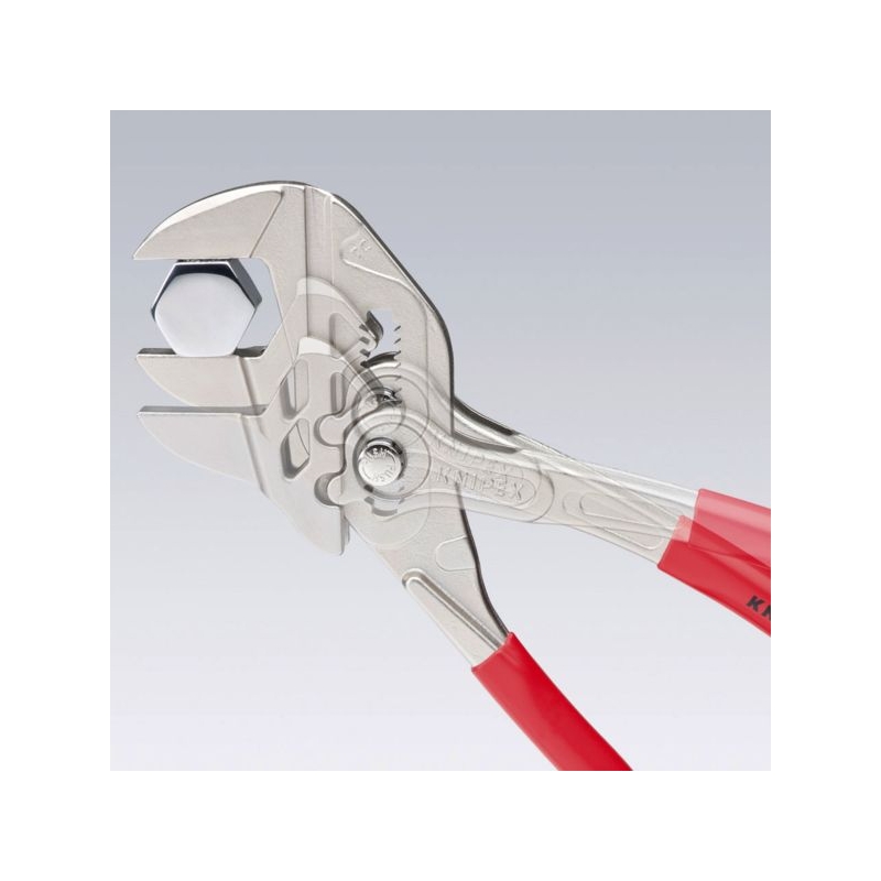 Remplace tout un jeu de clés plates, métriques et en pouce. Mâchoires lisses n?endommageant pas les supports. Réglage par simple pression du bouton. Poignées gainées en PVC.