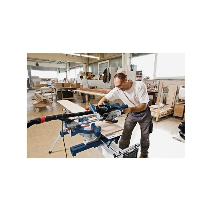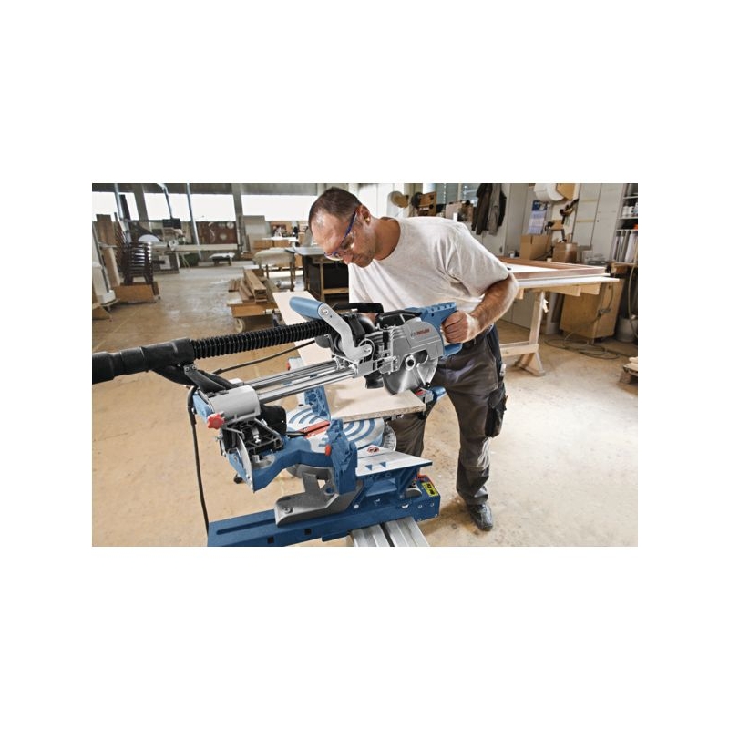 Travail plus propre et zone de travail dégagée par l'aspiration des poussières des 2 côtés. Tables latérales extensibles. Puissance : 1600 W Vitesse : 5500 tr/mn Ø lame : 216 mm x 30 mm Capacité de coupe - lame 0°/onglet 0° : hauteur 70 mm x largeur 312 mm - lame 45°/onglet 0° : hauteur 45 mm x largeur 312 mm - lame 0°/onglet 45° : hauteur 70 mm x largeur 214 mm - lame 45°/onglet 45° : hauteur 45 mm x largeur 214 mm Poids : 16,300 kg Livrée avec lame de scie Ø 216 mm, alésage 30 mm, 48 dents et pince de serrage.
